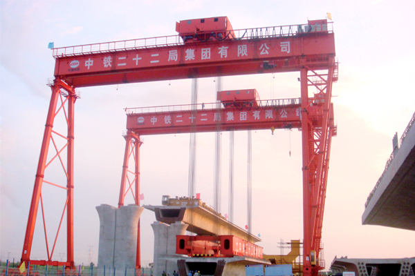 Beam lifting cranes, used to lift, handle, load beam in the preset field when the high-speed railway weight is below 1000t, It can travel along the laid rail and its running mechanism can rotate 90degree to realize straight travel and crosswise to finish handling all beams in the preset field. In the construction of the high-speed railway in China, this kind crane is used to lift, handle and load the beam by part of the preset field.