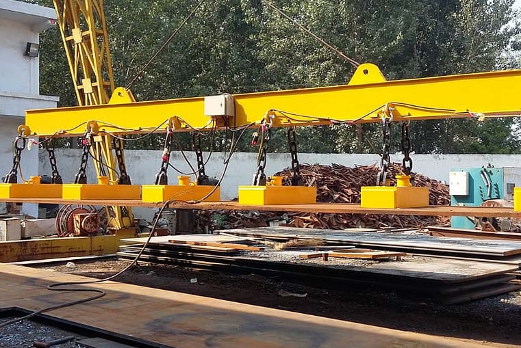 - On magnetic chuck: The magnetic chuck has a huge magnetic force which can be used to lift and transport a wide range of metal products and can handle a large volume of metals at a time.