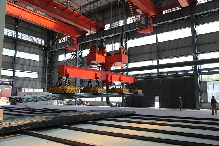 QC overhead Crane is equipped with detachable electromagnetic chuck so it is especially suitable for the frequent loading and hailing working for magnetic black metal products and materials (e.g., steel ingot, steel, pig iron block) within the fixed span room in metallurgy factories, indoors or outdoors.