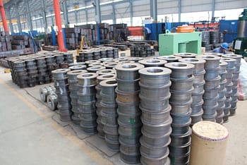 - Bahan: Bahan roda casting umumnya adalah 50SiMn, ZD45, ZG55. Bahan roda tempa umumnya adalah DG65Mn dan 42CrMo.