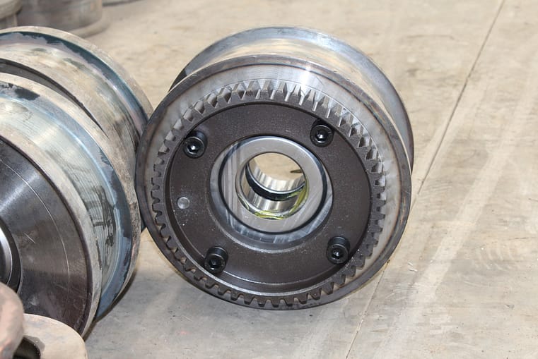 Wheelsets sebagai komponen kunci dari mekanisme perjalanan crane, yang kualitasnya baik atau buruk akan berdampak signifikan pada penggunaannya, GB / T6392-2008 memiliki peraturan khusus untuk komposisi kimia bahan, sifat mekanik, mode perlakuan panas, kekerasan , kualitas permukaan dan presisi. Roda derek merupakan komponen yang relatif mudah rusak. Berdasarkan karakteristik penggunaan crane, ini membutuhkan tapak roda dengan kekerasan tinggi, dan memiliki beberapa kedalaman dan lapisan transisi yang mengeras padam (kedalaman> 10mm, kekerasan HRC40-48), sehingga meningkatkan kinerja daya dukung, ketahanan aus & kelelahan kontak perlawanan. Pada saat yang sama, itu membutuhkan organisasi matriksnya untuk memiliki sifat mekanik yang baik & status organisasi yang baik, kekerasan harus mencapai HBS187 ~ 229, sehingga memiliki ketangguhan tinggi, meningkatkan ketahanan benturan dan kinerja ketahanan retak.
