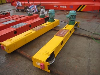 LEES MEER >>Model: 5T Geïntegreerde Takel Trolley Capaciteit: 5t Hefhoogte: 10m Trolley spoorbreedte: 1150mm Hefsnelheid: 0,8/8 m/min Rijsnelheid takel: 6/18 m/min Vermogen hijsmotor: 0,8/7,5 kw CT motorvermogen:0,75/0,25 kw Motorbeschermingsgraad: IP54 Plichtsgroep: M5 Controlewijze: Afstandsbediening Werkspanning: AC 380V 60HZ 3Ph Atmosfeer - Verzinkerij Max omgeving [...]
