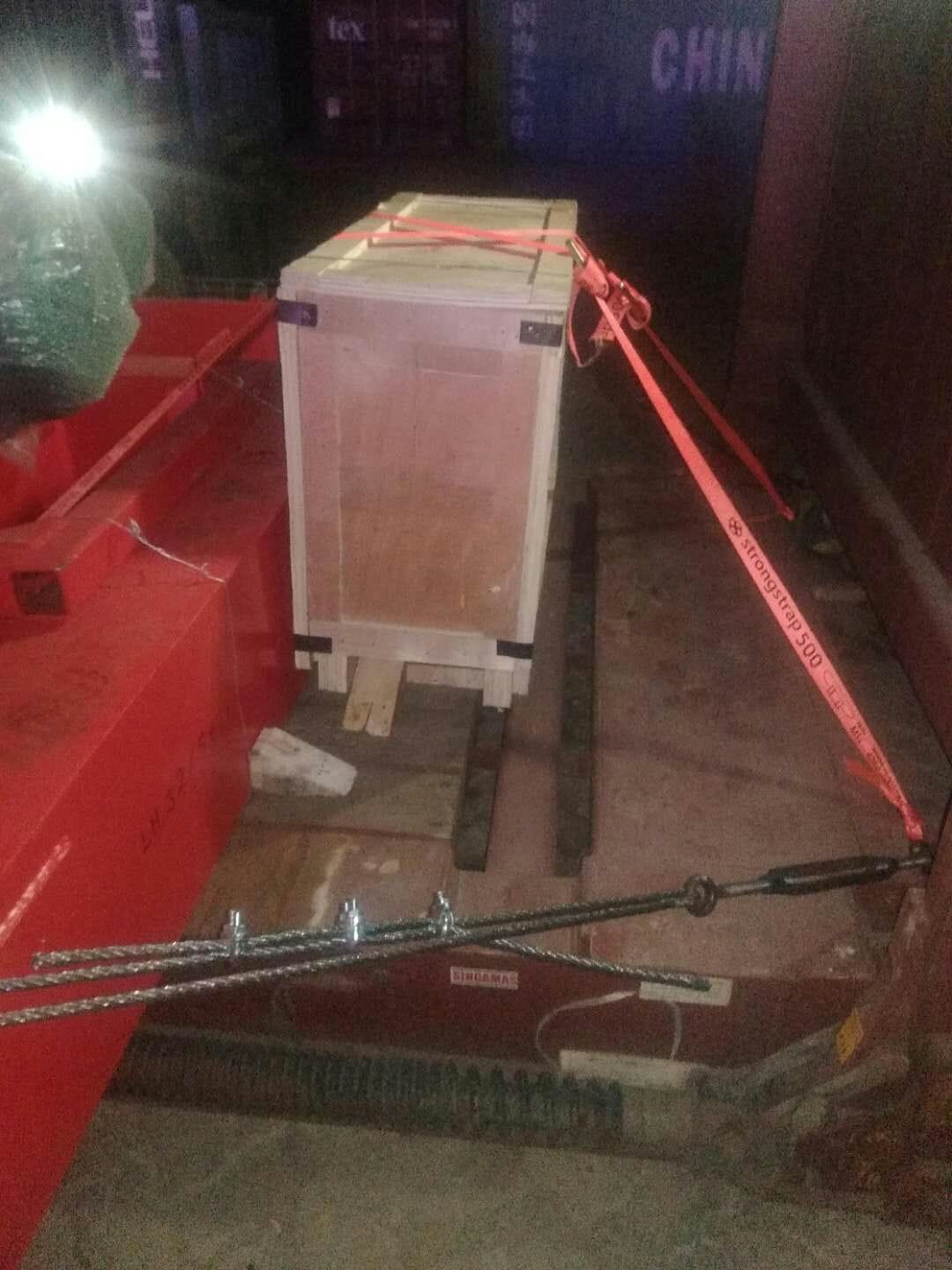 And also since the trolley dimension is 4.65*3.8*1.24m(length*width*height), it could not be loaded into 20GP/OT so this trolley has been transported by 20 feet FR(Flat Rack Container).