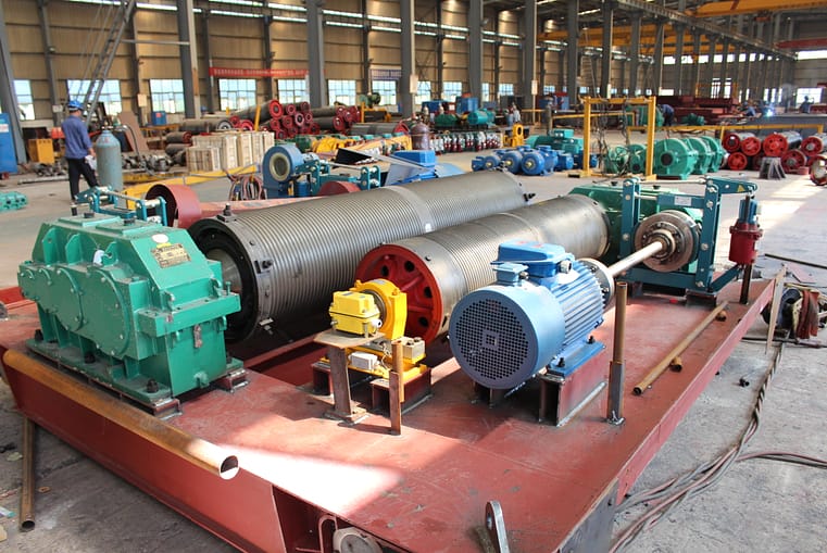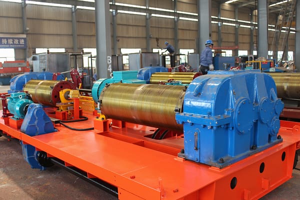 Blocos de gancho- Consiste em gancho e roldana. O material do gancho é o DG34CrMo. O material da polia é o Q235 laminado a quente. Ele adota rolamento de rolos anti-fricção, o gancho pode ser uma rotação de 360 graus. Ele é equipado com trava de segurança prensada por mola, evitando que escorregue. Todas as polias utilizam um rolamento livre de manutenção, o projeto pode prevenir eficientemente a abrasão entre o cabo de aço e o invólucro da polia. Tem estrutura geral e volume delicados, além de aparência agradável.
