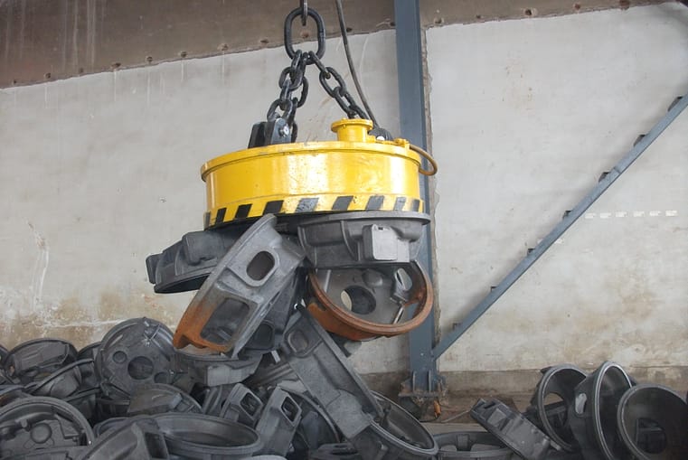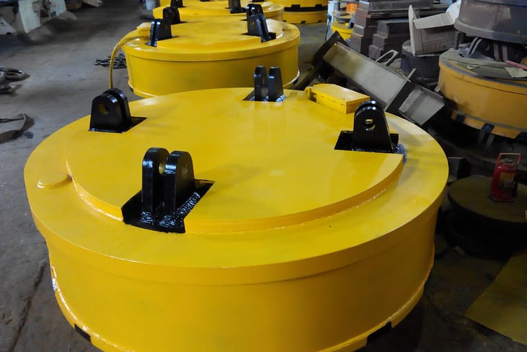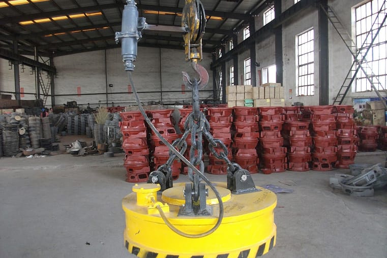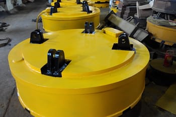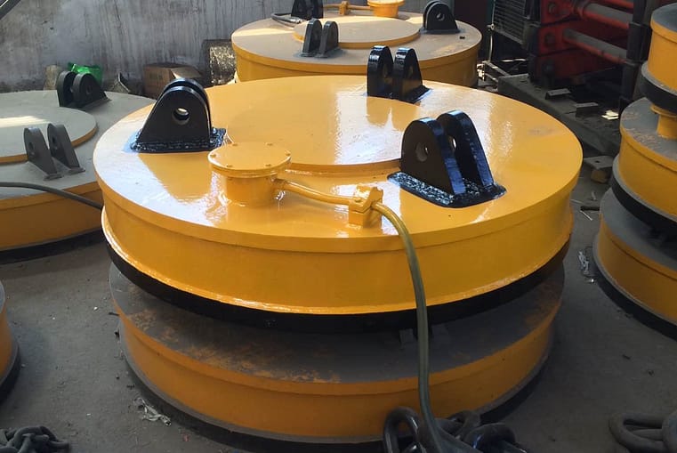 Электромагнит предназначен для подъема стальных обрезков, а также может быть установлен на экскаваторе. Он использует специальную конструкцию магнитной цепи, которая имеет большое воздушное пространство и плотность магнетизма. Он изготовлен из алюминиевой проволоки, а защитная пластина катушки изготовлена из прокатного листа из высокопрочной стали Mn, которая имеет хорошие характеристики износостойкости и термостойкости. Он также имеет характеристики легкого веса, низкого энергопотребления, высокой грузоподъемности и длительного срока службы.