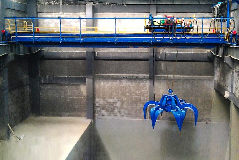 Cần trục ngoạm rác là thiết bị cốt lõi của hệ thống trung chuyển rác thải nhà máy đốt rác trong cuộc sống đô thị hiện đại, là loại cần trục ngoạm trên cao, được đặt ở vị trí phía trên của hố chứa rác, chủ yếu đảm nhiệm việc trung chuyển, vận chuyển, trộn, lấy và cân.